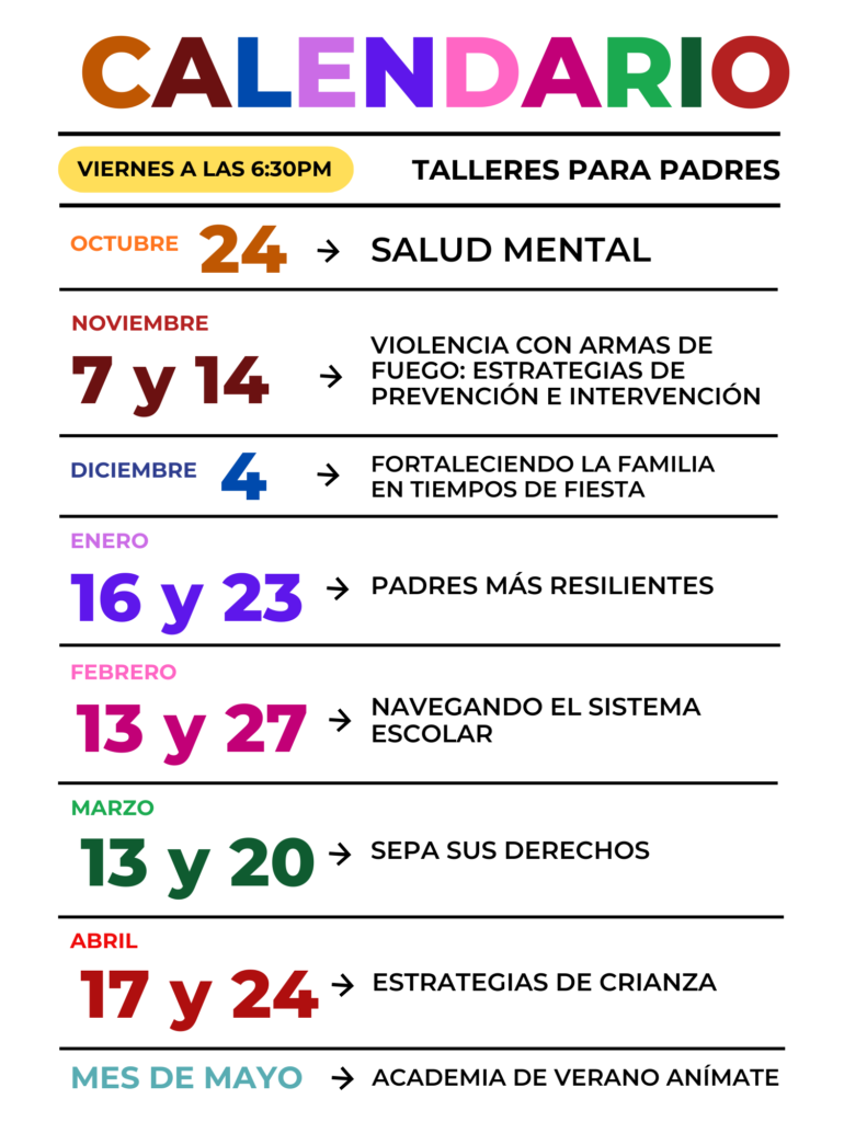 LaAmistad se esfuerza por apoyar a las familias con estudiantes que participan en LaAmistad Afterschool a través de talleres mensuales sobre una variedad de temas, tales como: