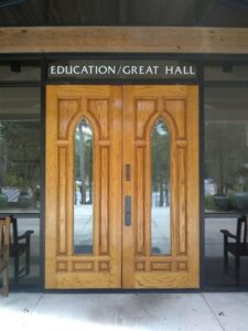 Parking is available in the front parking lot of the church. Please enter through the front of the building. Entrance is pictured above. You will see the sign in table on the left. LaAmistad classrooms are upstairs on the 3rd floor. You are welcome to take the elevator behind the sign in table, or the stairs located behind the double doors.